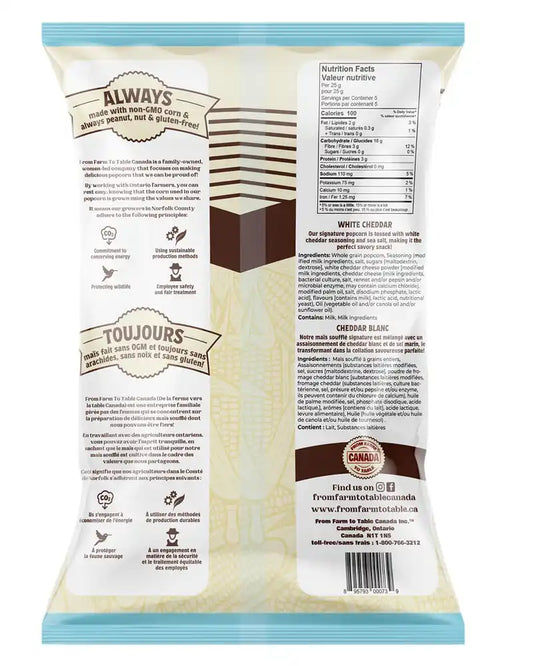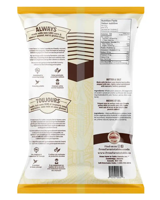 From Farm to Table Canada produces deliciously prepared healthy popcorn and chips. Made from the highest quality locally sourced ingredients
